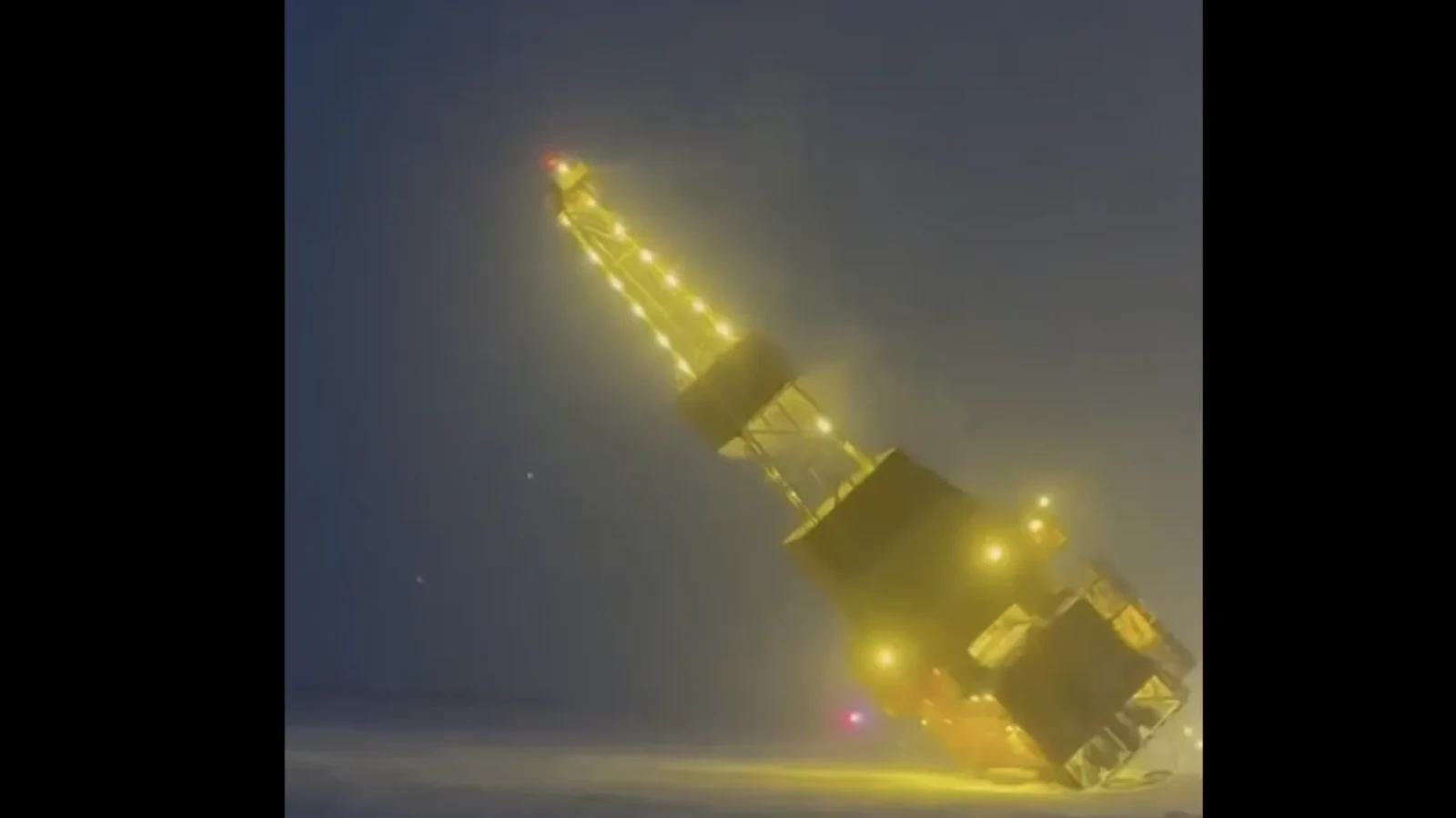 În imaginile surprinse, structura uriașă poate fi văzută cum se înclină lent, apoi se prăbușește complet, fiind urmată de apariția unor flăcări la nivelul epavei. Potrivit companiei ConocoPhillips, care opera platforma, doi muncitori se aflau pe instalație în momentul incidentului. Aceștia, alături de mai mulți membri ai echipelor de intervenție, au fost transportați la spital, însă nu au suferit răni grave.
